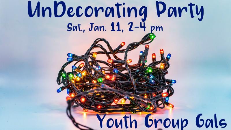 All Youth Group Gals are invited to help remove and put away Christmas decorations from the Youth Room on Saturday, January 11, 2025, from 2:00 pm to 4:00 pm.