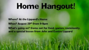 Join your friends at the Lippard’s home (8870 Baseline Road, Battle Creek, MI 49017) on Saturday, August 29, 2020, from 6:00 pm to 9:00 pm at the Home Hangout.