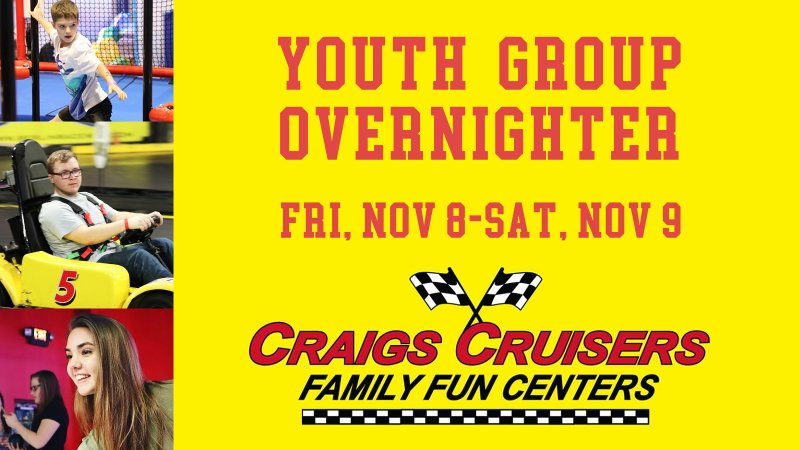 You don’t want to miss this! It’s an overnight adventure to Craig’s Cruisers on Friday night, November 8, at 8:30 pm through 7:00 am Saturday morning, November 9, 2019!