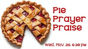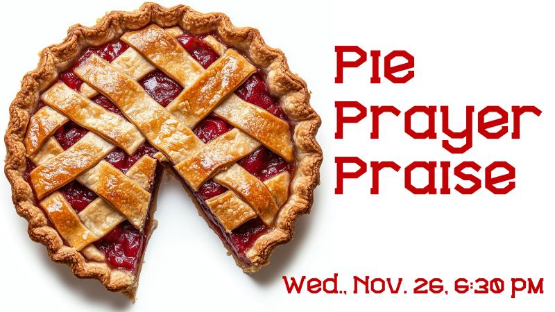 The annual Pie, Prayer, & Praise Service will be held on Wednesday, November 26, 2025, at 6:30 pm.