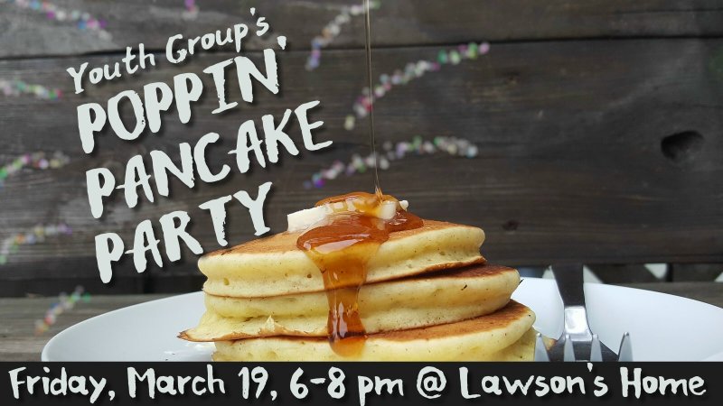 « All Events This event has passed. Poppin’ Pancake Party March 19, 2021 @ 6:00 pm - 8:00 pm « Gingerbread House Contest Playing Among Us Game » Mark your calendars for Friday, March 19, 2021, from 6:00 pm to 8:00 pm for the Youth Group’s Poppin’ Pancake Party at the Lawson’ home. Add to calendar Google Calendar iCalendar Outlook 365 Outlook Live Details Date: March 19, 2021 Time: 6:00 pm - 8:00 pm