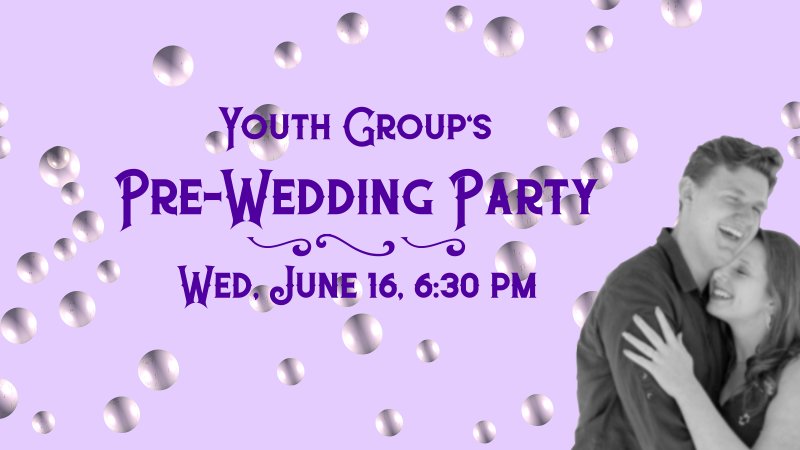The countdown is on … there’s less than a month before Kezi marries Pastor Preston! Celebrate the upcoming nuptials with your friends and leaders at the pre-Wedding Party during Youth Group at 6:30 pm on Wednesday, June 16, 2021.